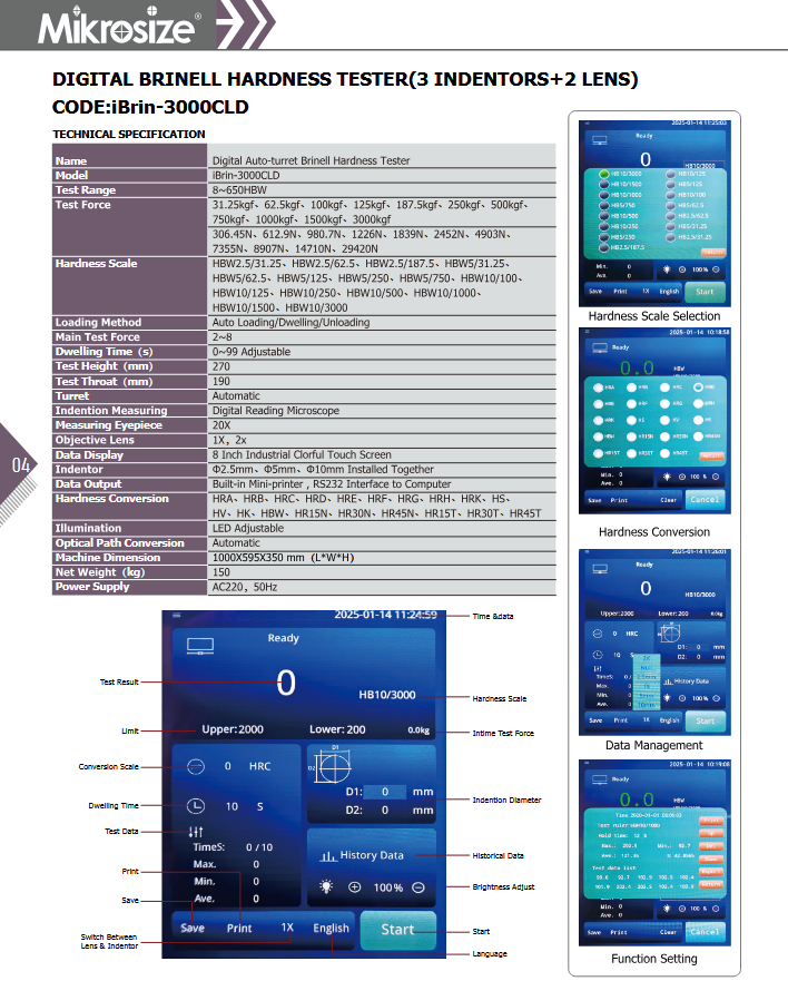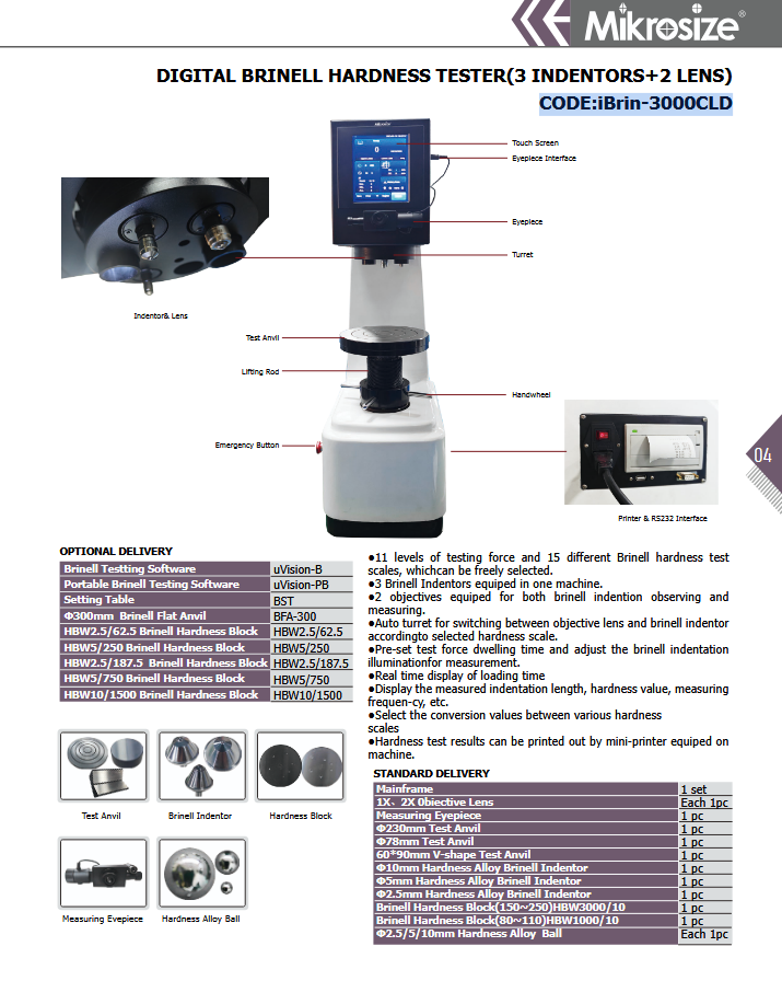Mikrosize iBrin-3000CLD DIGITAL BRINELL HARDNESS TESTER(3 INDENTORS+2 LENS) September 8, 2025September 8, 2025 admx17
