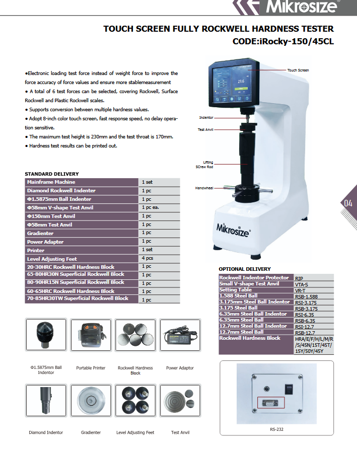 Mikrosize iRocky-150/45CL TOUCH SCREEN FULLY ROCKWELL HARDNESS TESTER September 7, 2025September 8, 2025 admx17