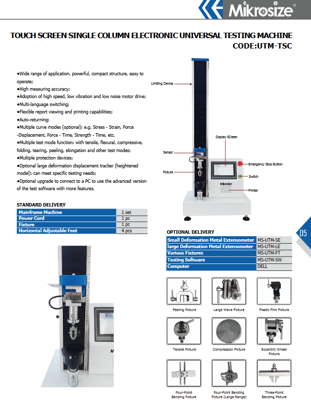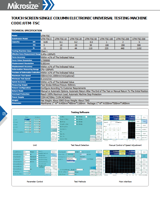 Mikrosize TOUCH SCREEN SINGLE COLUMN ELECTRONIC UNIVERSAL TESTING MACHINE CODE:UTM-TSC September 8, 2025 admx17